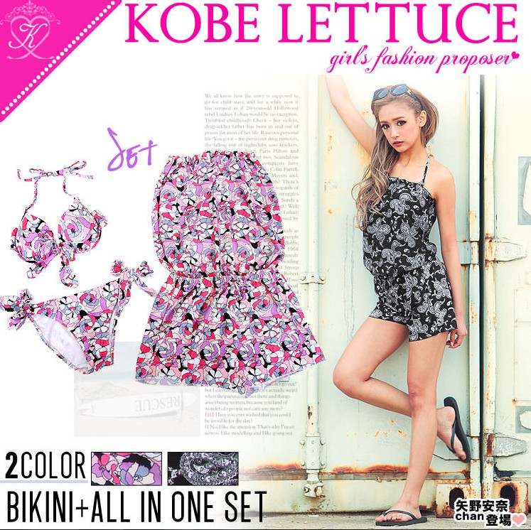 矢野安奈☆ペイズリー柄&花柄ビキニ水着&ベアオールインワン!